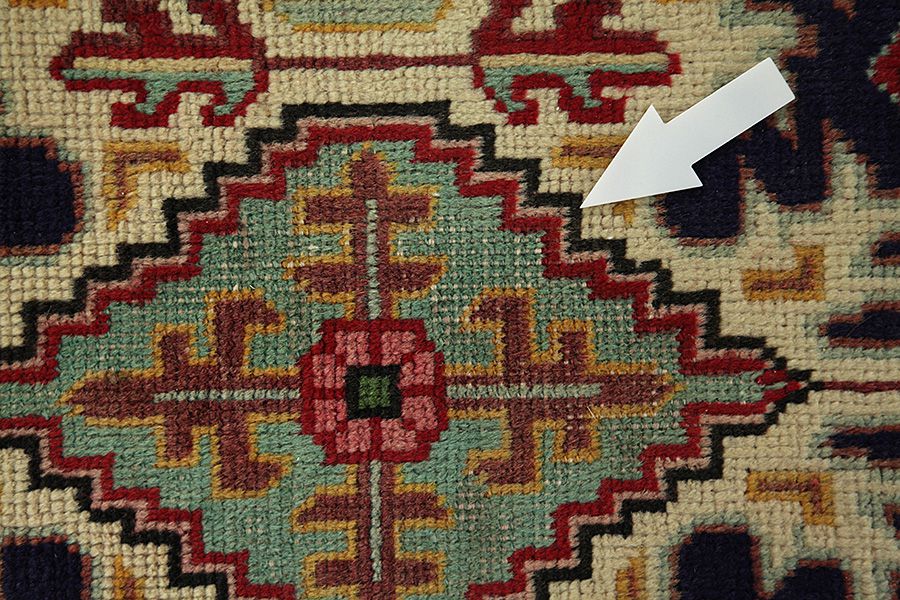 Abrash: Due to the different amount of grease in the wool and the added salt during the process of dyeing, the wool has got a varying colour absorbance. This is not very visible before weaving. During the weaving though, lines of the same colour are formed in the rug. This is called Abrash (which in Farsi means little cloud) and it shows that the wool was not manufactured using chemical means and marks the naturalness and authenticity of the rugs. Examples