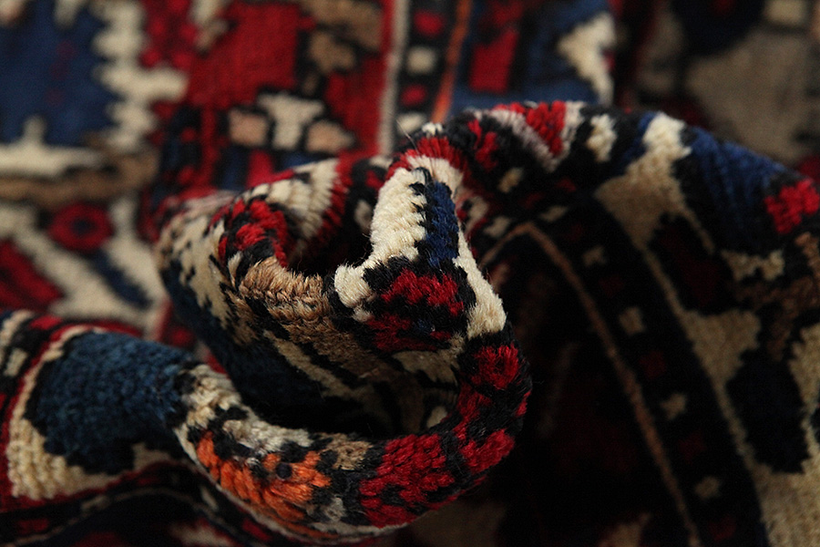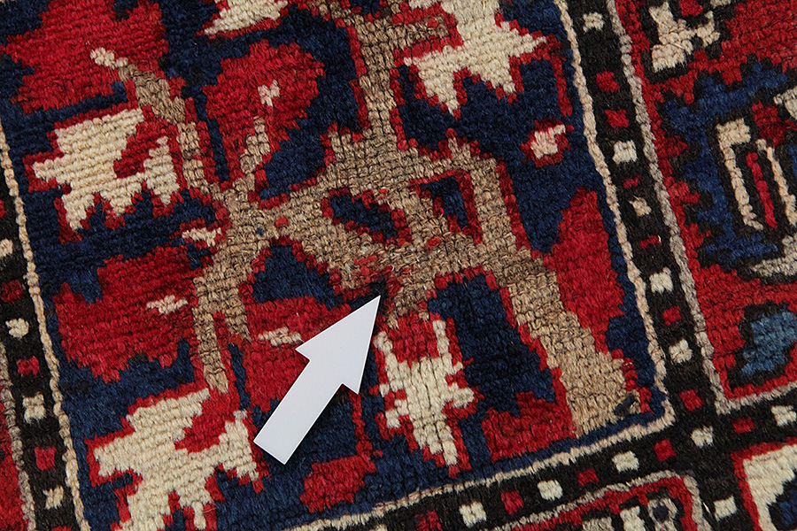 Abrash: Due to the different amount of grease in the wool and the added salt during the process of dyeing, the wool has got a varying colour absorbance. This is not very visible before weaving. During the weaving though, lines of the same colour are formed in the rug. This is called Abrash (which in Farsi means little cloud) and it shows that the wool was not manufactured using chemical means and marks the naturalness and authenticity of the rugs. Examples