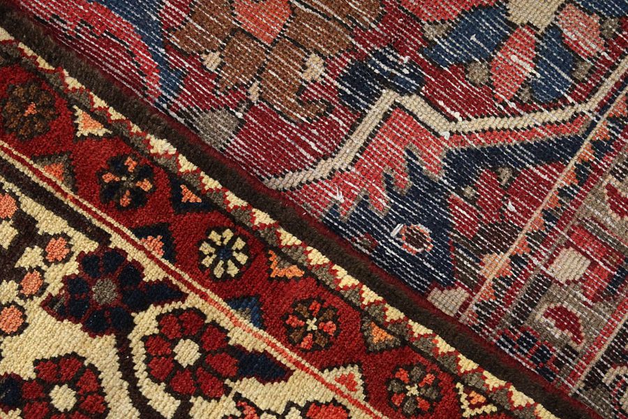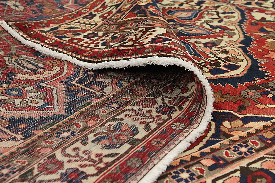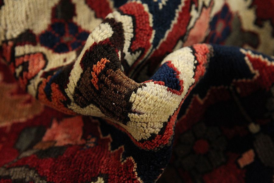 Abrash: Due to the different amount of grease in the wool and the added salt during the process of dyeing, the wool has got a varying colour absorbance. This is not very visible before weaving. During the weaving though, lines of the same colour are formed in the rug. This is called Abrash (which in Farsi means little cloud) and it shows that the wool was not manufactured using chemical means and marks the naturalness and authenticity of the rugs. Examples