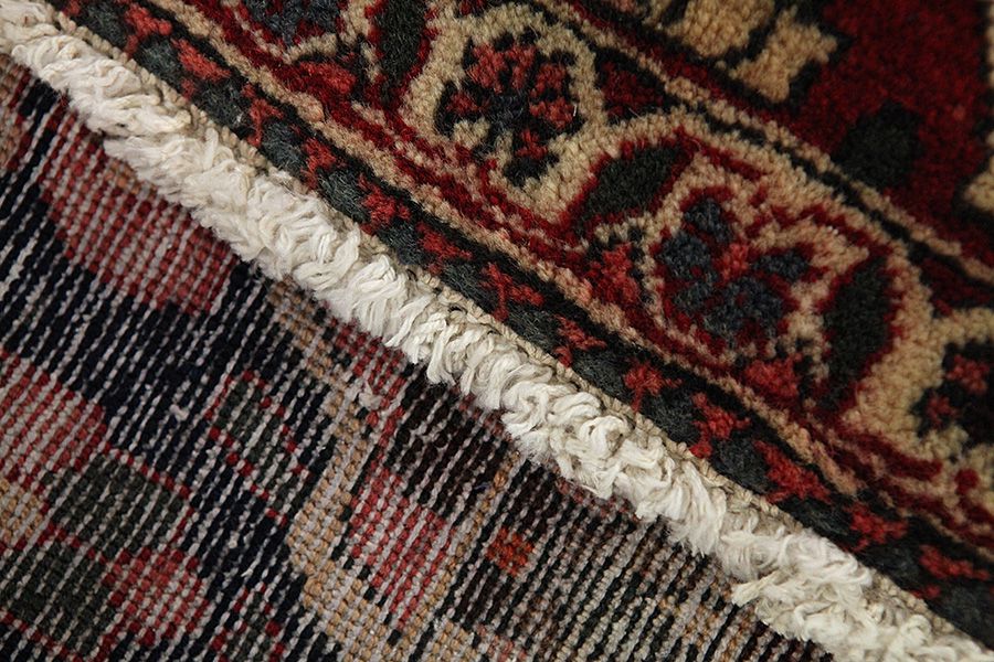 Abrash: Due to the different amount of grease in the wool and the added salt during the process of dyeing, the wool has got a varying colour absorbance. This is not very visible before weaving. During the weaving though, lines of the same colour are formed in the rug. This is called Abrash (which in Farsi means little cloud) and it shows that the wool was not manufactured using chemical means and marks the naturalness and authenticity of the rugs. Examples