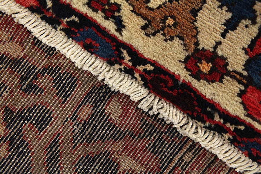 Abrash: Due to the different amount of grease in the wool and the added salt during the process of dyeing, the wool has got a varying colour absorbance. This is not very visible before weaving. During the weaving though, lines of the same colour are formed in the rug. This is called Abrash (which in Farsi means little cloud) and it shows that the wool was not manufactured using chemical means and marks the naturalness and authenticity of the rugs. Examples
