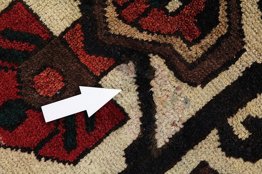 Abrash: Due to the different amount of grease in the wool and the added salt during the process of dyeing, the wool has got a varying colour absorbance. This is not very visible before weaving. During the weaving though, lines of the same colour are formed in the rug. This is called Abrash (which in Farsi means little cloud) and it shows that the wool was not manufactured using chemical means and marks the naturalness and authenticity of the rugs. Examples