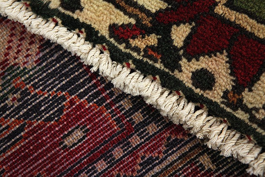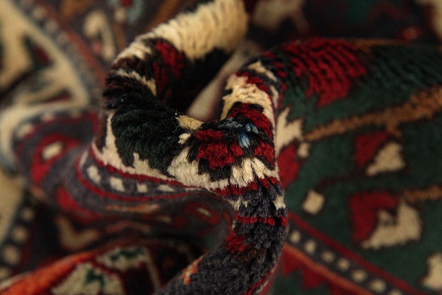 Abrash: Due to the different amount of grease in the wool and the added salt during the process of dyeing, the wool has got a varying colour absorbance. This is not very visible before weaving. During the weaving though, lines of the same colour are formed in the rug. This is called Abrash (which in Farsi means little cloud) and it shows that the wool was not manufactured using chemical means and marks the naturalness and authenticity of the rugs. Examples