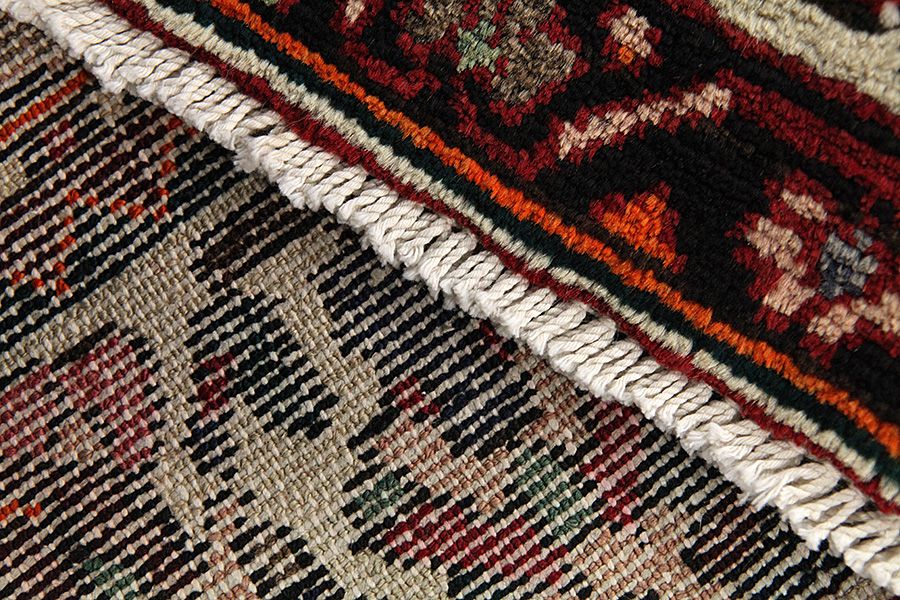Abrash: Due to the different amount of grease in the wool and the added salt during the process of dyeing, the wool has got a varying colour absorbance. This is not very visible before weaving. During the weaving though, lines of the same colour are formed in the rug. This is called Abrash (which in Farsi means little cloud) and it shows that the wool was not manufactured using chemical means and marks the naturalness and authenticity of the rugs. Examples
