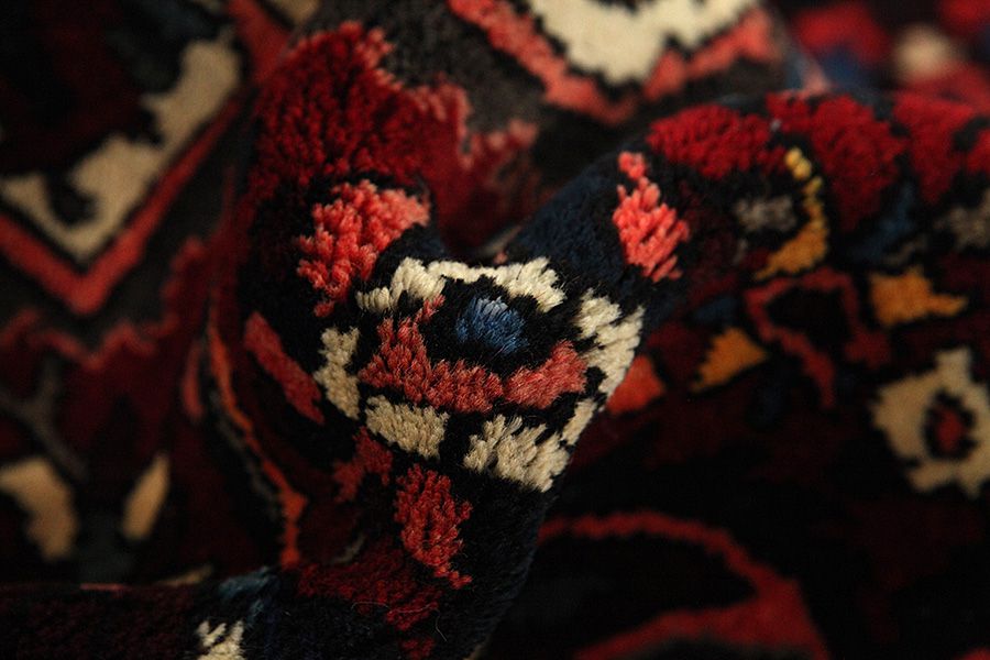 Abrash: Due to the different amount of grease in the wool and the added salt during the process of dyeing, the wool has got a varying colour absorbance. This is not very visible before weaving. During the weaving though, lines of the same colour are formed in the rug. This is called Abrash (which in Farsi means little cloud) and it shows that the wool was not manufactured using chemical means and marks the naturalness and authenticity of the rugs. Examples