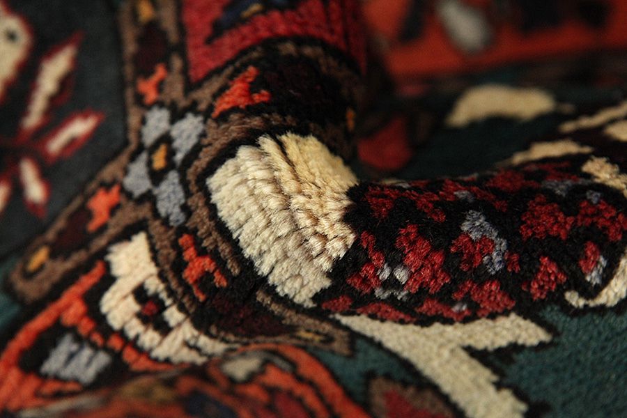 Abrash: Due to the different amount of grease in the wool and the added salt during the process of dyeing, the wool has got a varying colour absorbance. This is not very visible before weaving. During the weaving though, lines of the same colour are formed in the rug. This is called Abrash (which in Farsi means little cloud) and it shows that the wool was not manufactured using chemical means and marks the naturalness and authenticity of the rugs. Examples