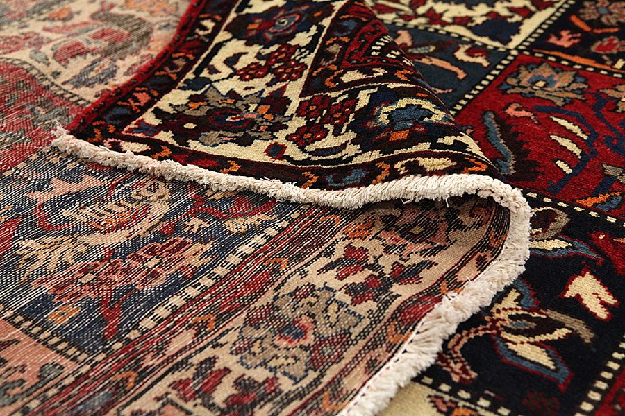 Bakhtiari Rugs : In the mountains Zagros, west of the city of Isfahan, around the town of Shahr-e-Kurd, live the nomads Bakhtiar. Their rugs are known for the design with various repeating squares in which flowers and animals are depicted. For this reason the design is called "garden"(Khesti). Their rugs are very durable with a dense weave and very good quality Persian wool coming from sheep grazing at a high altitude. The best Bakhtiari rugs with highest knot density are often called Bibibaff.