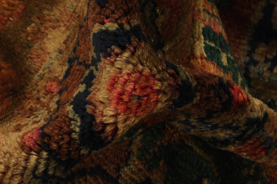 Abrash: Due to the different amount of grease in the wool and the added salt during the process of dyeing, the wool has got a varying colour absorbance. This is not very visible before weaving. During the weaving though, lines of the same colour are formed in the rug. This is called Abrash (which in Farsi means little cloud) and it shows that the wool was not manufactured using chemical means and marks the naturalness and authenticity of the rugs. Examples