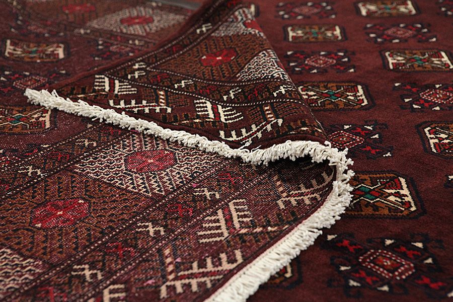 Bokhara Rugs : The Bokhara rugs are woven in Belutchistan and in different regions of Uzbekistan, Turkmenistan and Afghanistan. Turkmen rugs include Basjir, Salor, Tekke-Bochara, Jolam-Bocharaband, Ersari, Tjaudor and Yomut which are examples of the rug style called Bokhara. The deep red and the whole range of red from purple to brown are the dominant colours with repeating octagons, rhombi, yomut motifs being characteristic of these rugs. The warp of the rugs is always wool.