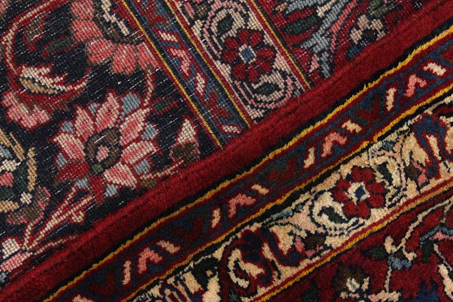 Abrash: Due to the different amount of grease in the wool and the added salt during the process of dyeing, the wool has got a varying colour absorbance. This is not very visible before weaving. During the weaving though, lines of the same colour are formed in the rug. This is called Abrash (which in Farsi means little cloud) and it shows that the wool was not manufactured using chemical means and marks the naturalness and authenticity of the rugs. Examples