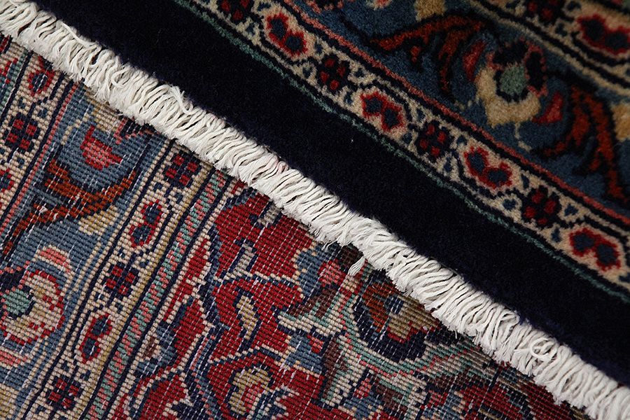 Abrash: Due to the different amount of grease in the wool and the added salt during the process of dyeing, the wool has got a varying colour absorbance. This is not very visible before weaving. During the weaving though, lines of the same colour are formed in the rug. This is called Abrash (which in Farsi means little cloud) and it shows that the wool was not manufactured using chemical means and marks the naturalness and authenticity of the rugs. Examples