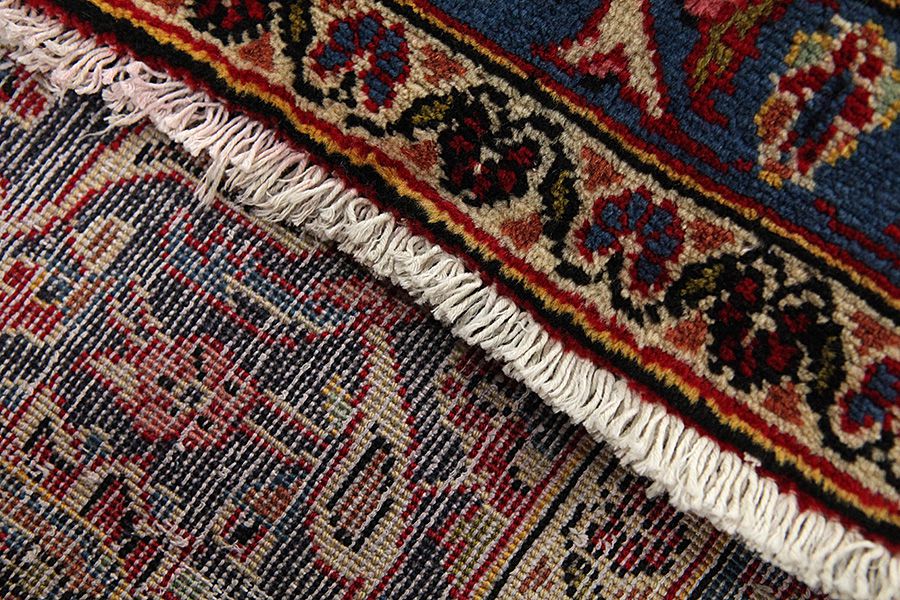 Abrash: Due to the different amount of grease in the wool and the added salt during the process of dyeing, the wool has got a varying colour absorbance. This is not very visible before weaving. During the weaving though, lines of the same colour are formed in the rug. This is called Abrash (which in Farsi means little cloud) and it shows that the wool was not manufactured using chemical means and marks the naturalness and authenticity of the rugs. Examples