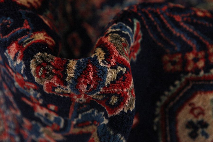 Farahan Rugs : The area Farahan is located in Central Iran, about 580 km south of Tehran between the cities Arak, Qum and Kashan. Nowadays, in Western countries Farahan rugs are also known as Mahal. These rugs have solid construction and fine designs. To create them mineral colours are used that give a copper-rust green colour. They often have got a blue background in the pile, with repeating Herati designs and a medallion that is surrounded by roses and other flowers with delicate lines in a variety of colours. Their wool is soft and of very good quality, which allows for a very fine and tight weave.