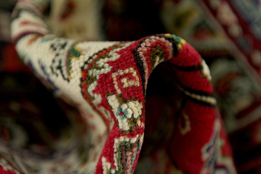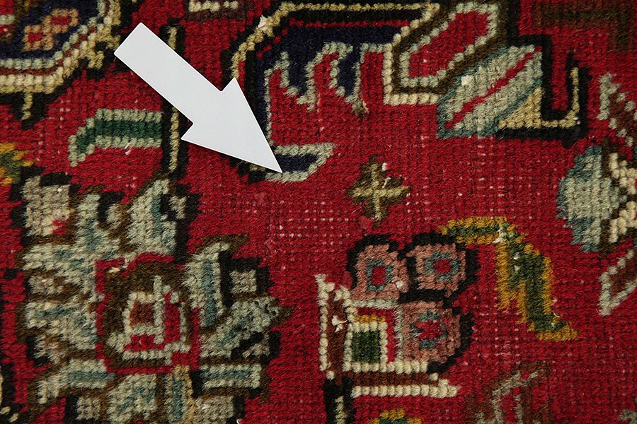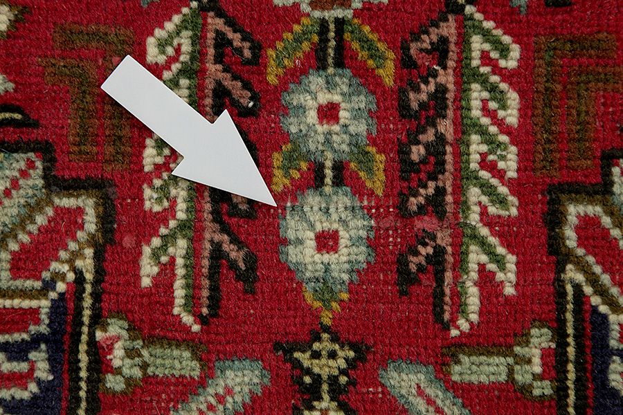 Abrash: Due to the different amount of grease in the wool and the added salt during the process of dyeing, the wool has got a varying colour absorbance. This is not very visible before weaving. During the weaving though, lines of the same colour are formed in the rug. This is called Abrash (which in Farsi means little cloud) and it shows that the wool was not manufactured using chemical means and marks the naturalness and authenticity of the rugs. Examples
