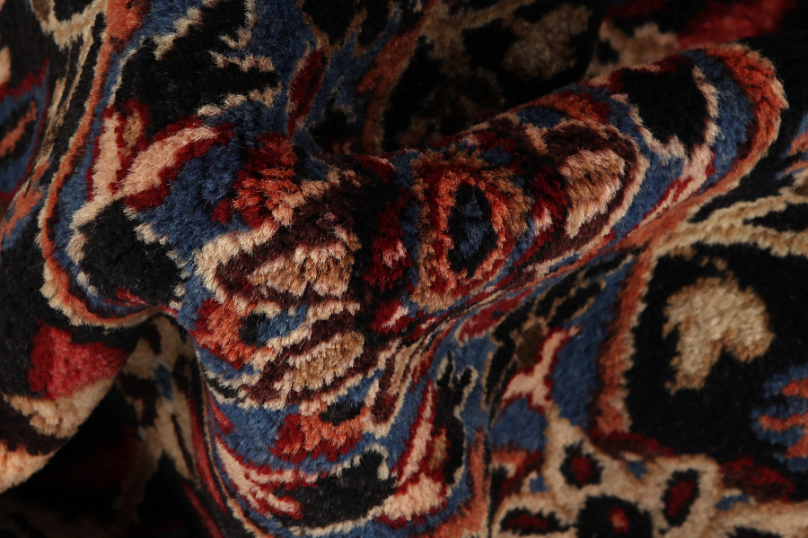 Abrash: Due to the different amount of grease in the wool and the added salt during the process of dyeing, the wool has got a varying colour absorbance. This is not very visible before weaving. During the weaving though, lines of the same colour are formed in the rug. This is called Abrash (which in Farsi means little cloud) and it shows that the wool was not manufactured using chemical means and marks the naturalness and authenticity of the rugs. Examples