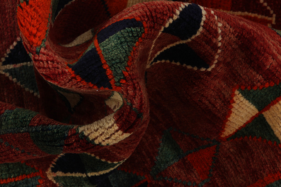 Gabbeh Rugs : Gabbeh in Farsi means natural, primitive. Rugs and rugs with this name are woven by the nomads Qashqai who roam about, or in villages in Southwestern Iran where they live. The yarns are processed and twisted by hand, painted with herbal colours and woven with a wool warp up to 2 cm thick. These rugs are simple, with few designs, or monochrome. The simple, linear designs with animals and human figures give them a contemporary look. Various names are given to Gabbeh rugs such asBasic, Amalehbaft, Kashkooli, Luribaft and Sumak. Gabbeh Kashkooli is a rug with high knot density and thinner than ordinary Persian Gabbeh rugs. The Persian Gabbeh is very durable and its quality is very good.