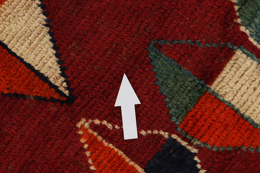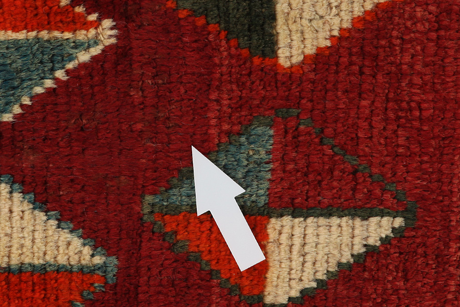 Abrash: Due to the different amount of grease in the wool and the added salt during the process of dyeing, the wool has got a varying colour absorbance. This is not very visible before weaving. During the weaving though, lines of the same colour are formed in the rug. This is called Abrash (which in Farsi means little cloud) and it shows that the wool was not manufactured using chemical means and marks the naturalness and authenticity of the rugs. Examples