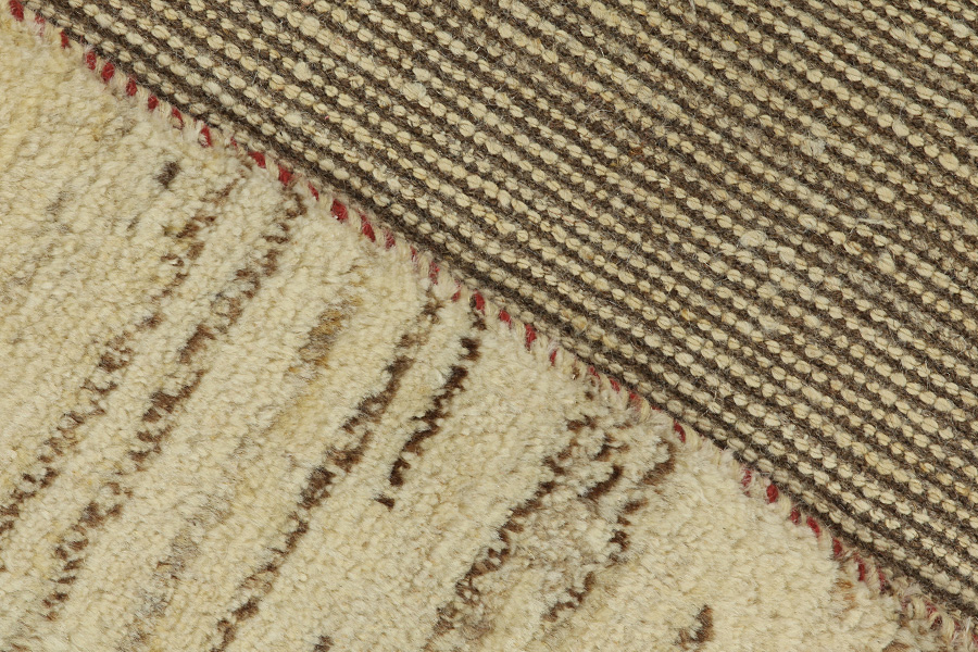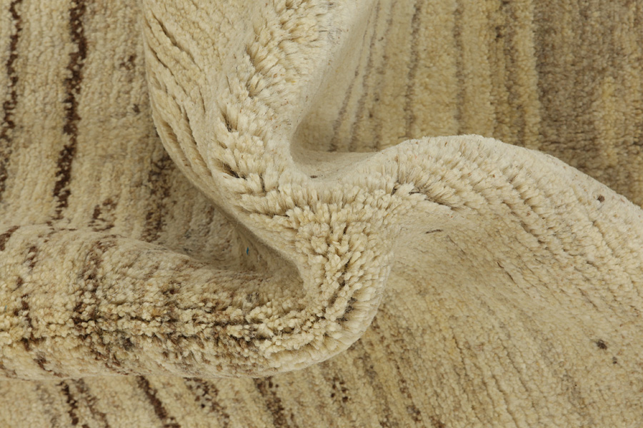 Abrash: Due to the different amount of grease in the wool and the added salt during the process of dyeing, the wool has got a varying colour absorbance. This is not very visible before weaving. During the weaving though, lines of the same colour are formed in the rug. This is called Abrash (which in Farsi means little cloud) and it shows that the wool was not manufactured using chemical means and marks the naturalness and authenticity of the rugs. Examples