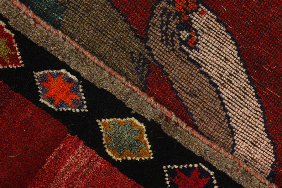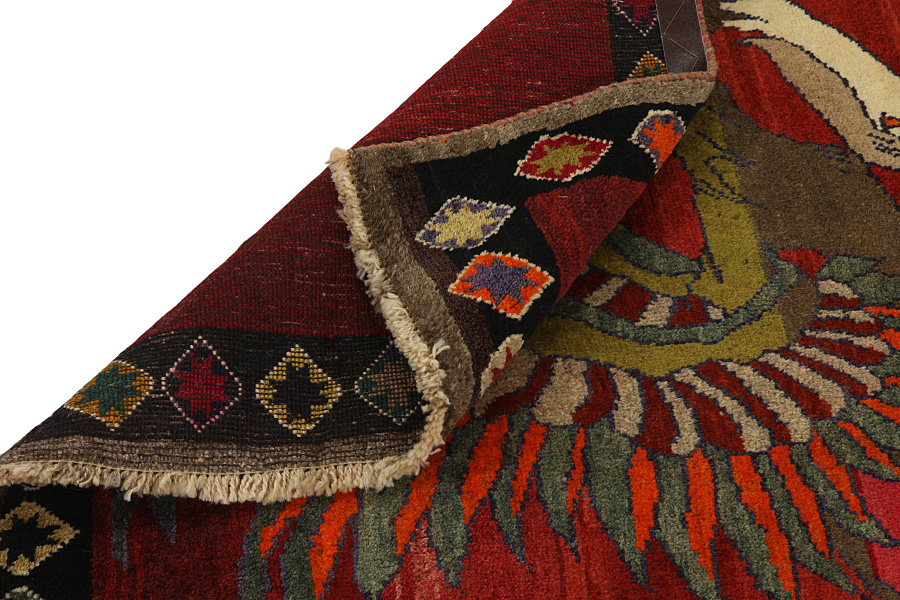 Qashqai Rugs : Qashqai rugs are woven by nomads who live in the mountainous areas of Southwest Persia, the provinces of Fars, Khuzestan, south of Isfahan and around the city Shiraz. Their rugs have a high knot density and a wide variety of designs, usually in deep red and blue colours. They weave rugs, Kilims and decorative textiles (ribbons, bags, etc.), which depict scenes from their lives with various representation of humans, animals, birds, trees and flowers.