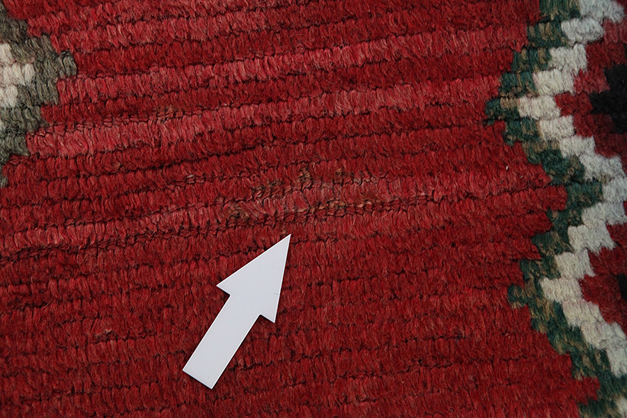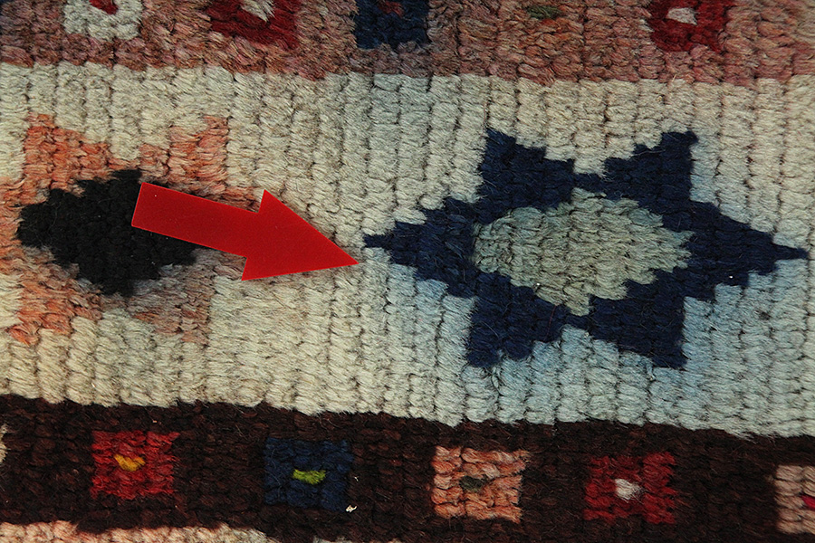 Abrash: Due to the different amount of grease in the wool and the added salt during the process of dyeing, the wool has got a varying colour absorbance. This is not very visible before weaving. During the weaving though, lines of the same colour are formed in the rug. This is called Abrash (which in Farsi means little cloud) and it shows that the wool was not manufactured using chemical means and marks the naturalness and authenticity of the rugs. Examples