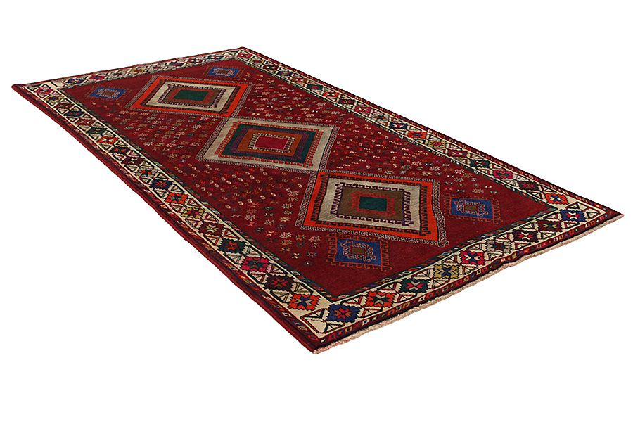 Qashqai Rugs : Qashqai rugs are woven by nomads who live in the mountainous areas of Southwest Persia, the provinces of Fars, Khuzestan, south of Isfahan and around the city Shiraz. Their rugs have a high knot density and a wide variety of designs, usually in deep red and blue colours. They weave rugs, Kilims and decorative textiles (ribbons, bags, etc.), which depict scenes from their lives with various representation of humans, animals, birds, trees and flowers.