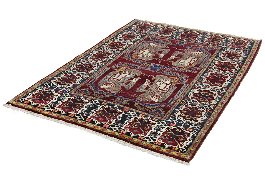 Lori Rugs : Rugs woven by the Lurs, a nomadic tribe in the mountainous Kurdish region of Southwest Iran, bordering Iraq. The Lori rugs usually have geometric shapes, often with rhombi and strictly linear scenes of the herbal and animal world. Because the areas where the Lurs live are inaccessible and isolated, they still weave with the old traditional ways, without influences from the Europeans. The centre of Luristan is Choremabad, which gave its name to the rugs woven there. Furthermore rugs have been named after the salt lake Neris.