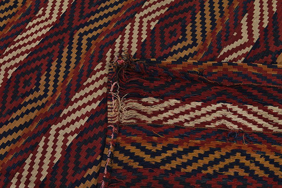 Flat woven at one or both ends of the rug's width: In some rugs the nomads weave at fringes on a narrow Kilim one or both sides of the width, or they weave them artistically into small braids. It is a technique various weavers use for a greater durability or simply to demonstrate their skill. Examples