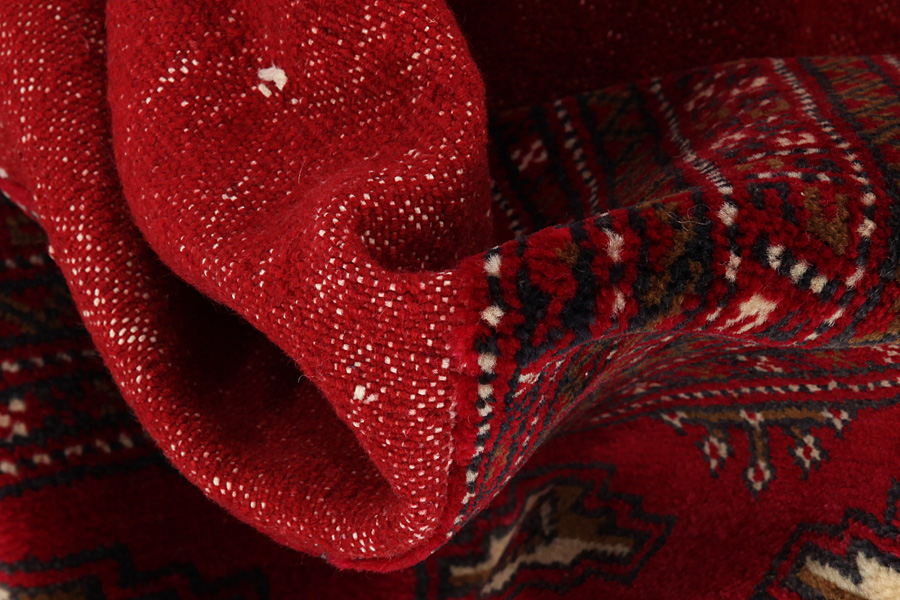 Bokhara Rugs : The Bokhara rugs are woven in Belutchistan and in different regions of Uzbekistan, Turkmenistan and Afghanistan. Turkmen rugs include Basjir, Salor, Tekke-Bochara, Jolam-Bocharaband, Ersari, Tjaudor and Yomut which are examples of the rug style called Bokhara. The deep red and the whole range of red from purple to brown are the dominant colours with repeating octagons, rhombi, yomut motifs being characteristic of these rugs. The warp of the rugs is always wool.