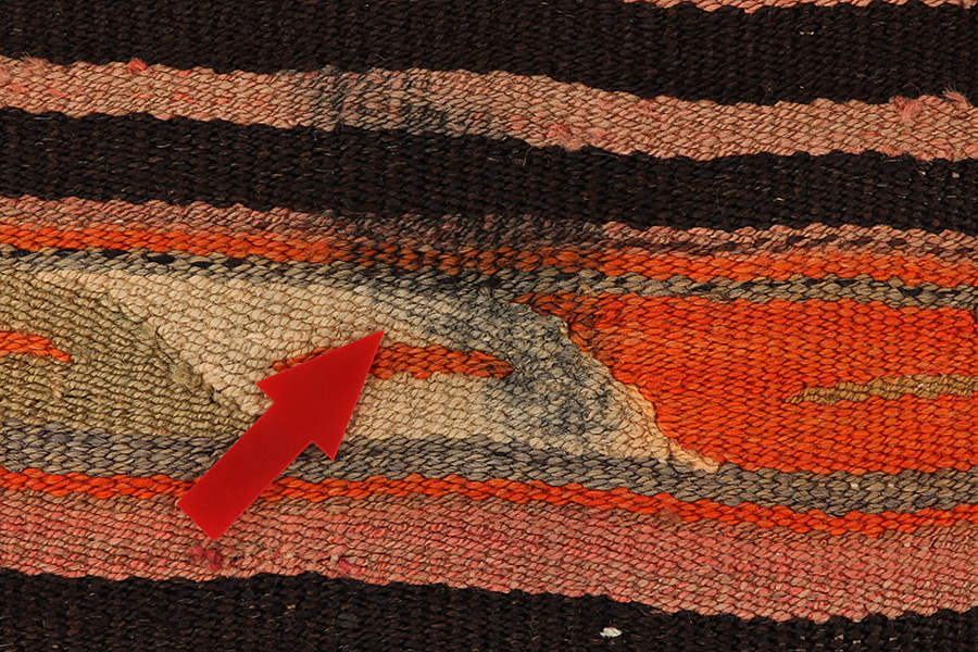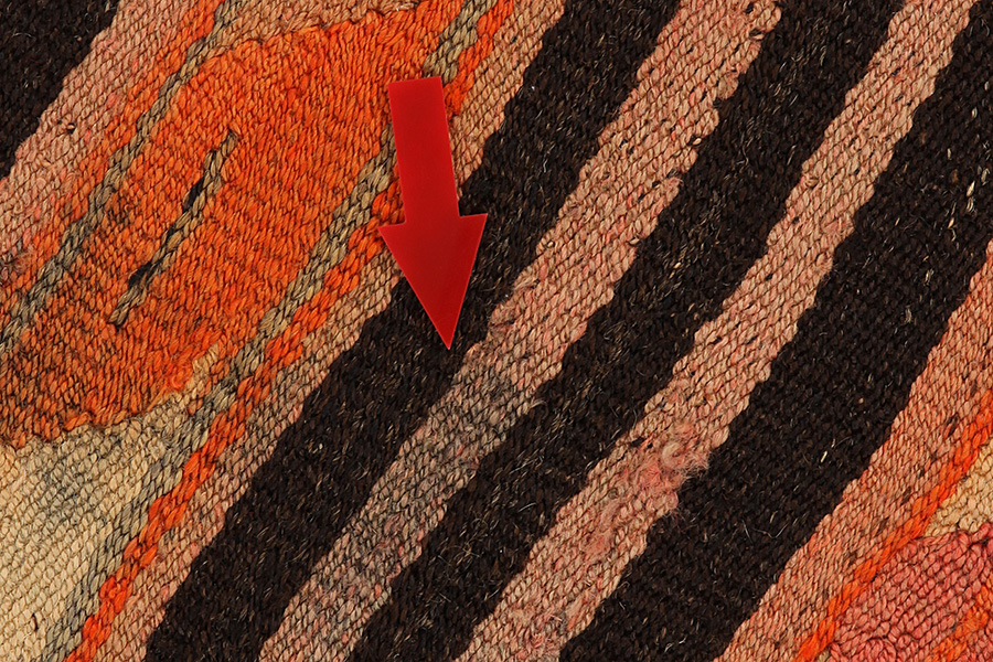Abrash: Due to the different amount of grease in the wool and the added salt during the process of dyeing, the wool has got a varying colour absorbance. This is not very visible before weaving. During the weaving though, lines of the same colour are formed in the rug. This is called Abrash (which in Farsi means little cloud) and it shows that the wool was not manufactured using chemical means and marks the naturalness and authenticity of the rugs. Examples