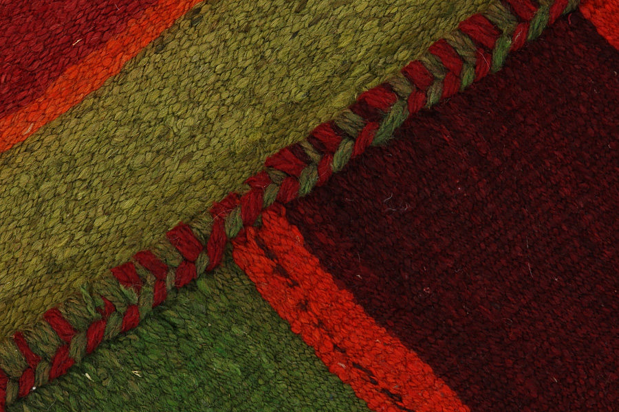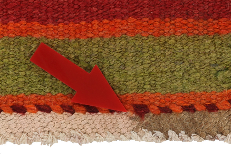 Flat woven at one or both ends of the rug's width: In some rugs the nomads weave at fringes on a narrow Kilim one or both sides of the width, or they weave them artistically into small braids. It is a technique various weavers use for a greater durability or simply to demonstrate their skill. Examples