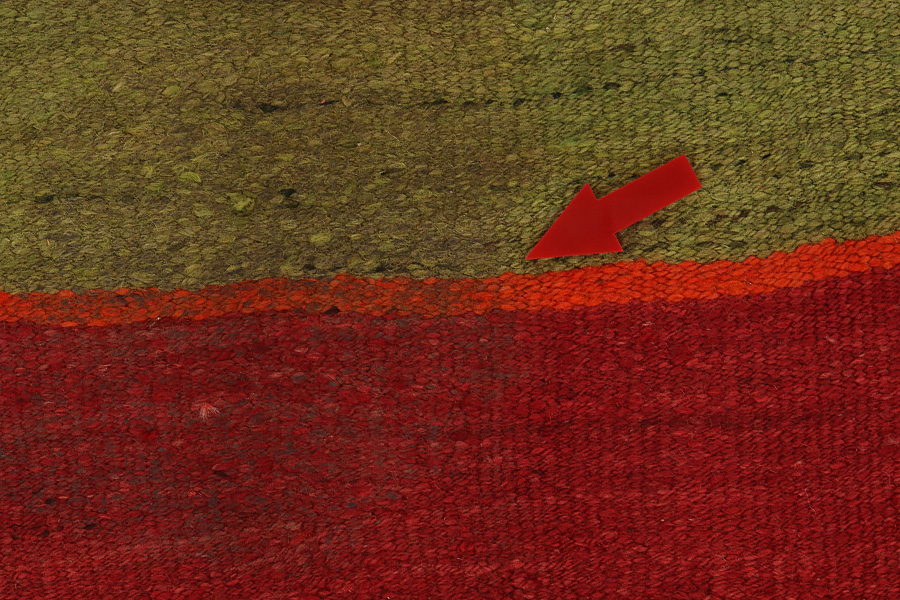 Abrash: Due to the different amount of grease in the wool and the added salt during the process of dyeing, the wool has got a varying colour absorbance. This is not very visible before weaving. During the weaving though, lines of the same colour are formed in the rug. This is called Abrash (which in Farsi means little cloud) and it shows that the wool was not manufactured using chemical means and marks the naturalness and authenticity of the rugs. Examples