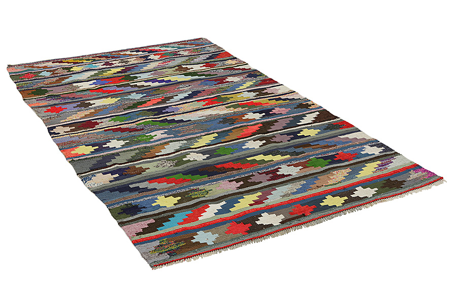 : This is a particular type of Oriental flat woven rug without a pile (which preceded the pile rug) and is manufactured mainly by nomads in Persia, Afghanistan, Turkey and in various regions of the Caucasus. These textiles are rather small with a plain weave and no pile and they have got geometric patterns and rich colours. In order to weave them, natural materials like wool are used and sometimes silk for lightweight and delicate rugs. The colouring of yarns is done with plants and minerals that contribute to natural, beautiful colours. The long history of Kilim rugs goes back centuries to the nomads of Central Asia. Initially the rugs were mainly used in households and much later became commercial products, following the bloom of the oriental ruging during the 16th and 17th century. They have many applications and can be used on the floor, as toppings or for decorating walls. The name kilim is derived from the Persian word gelim. In Kurdish they are called Berr. The most famous Persian rugs are Sumakh, Senneh, Fars and Qashqai. Many Kilims are also woven at the border between Persia and Afghanistan by the nomads of Balouch with dark earthy indicative colours.