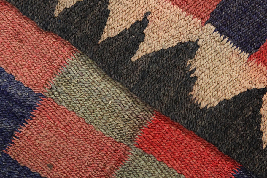 : This is a particular type of Oriental flat woven rug without a pile (which preceded the pile rug) and is manufactured mainly by nomads in Persia, Afghanistan, Turkey and in various regions of the Caucasus. These textiles are rather small with a plain weave and no pile and they have got geometric patterns and rich colours. In order to weave them, natural materials like wool are used and sometimes silk for lightweight and delicate rugs. The colouring of yarns is done with plants and minerals that contribute to natural, beautiful colours. The long history of Kilim rugs goes back centuries to the nomads of Central Asia. Initially the rugs were mainly used in households and much later became commercial products, following the bloom of the oriental ruging during the 16th and 17th century. They have many applications and can be used on the floor, as toppings or for decorating walls. The name kilim is derived from the Persian word gelim. In Kurdish they are called Berr. The most famous Persian rugs are Sumakh, Senneh, Fars and Qashqai. Many Kilims are also woven at the border between Persia and Afghanistan by the nomads of Balouch with dark earthy indicative colours.