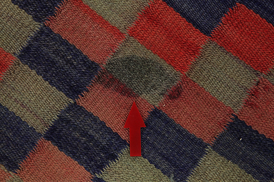 Abrash: Due to the different amount of grease in the wool and the added salt during the process of dyeing, the wool has got a varying colour absorbance. This is not very visible before weaving. During the weaving though, lines of the same colour are formed in the rug. This is called Abrash (which in Farsi means little cloud) and it shows that the wool was not manufactured using chemical means and marks the naturalness and authenticity of the rugs. Examples