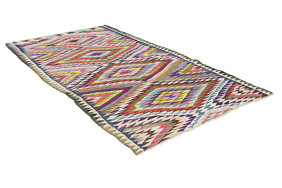 : This is a particular type of Oriental flat woven rug without a pile (which preceded the pile rug) and is manufactured mainly by nomads in Persia, Afghanistan, Turkey and in various regions of the Caucasus. These textiles are rather small with a plain weave and no pile and they have got geometric patterns and rich colours. In order to weave them, natural materials like wool are used and sometimes silk for lightweight and delicate rugs. The colouring of yarns is done with plants and minerals that contribute to natural, beautiful colours. The long history of Kilim rugs goes back centuries to the nomads of Central Asia. Initially the rugs were mainly used in households and much later became commercial products, following the bloom of the oriental ruging during the 16th and 17th century. They have many applications and can be used on the floor, as toppings or for decorating walls. The name kilim is derived from the Persian word gelim. In Kurdish they are called Berr. The most famous Persian rugs are Sumakh, Senneh, Fars and Qashqai. Many Kilims are also woven at the border between Persia and Afghanistan by the nomads of Balouch with dark earthy indicative colours.