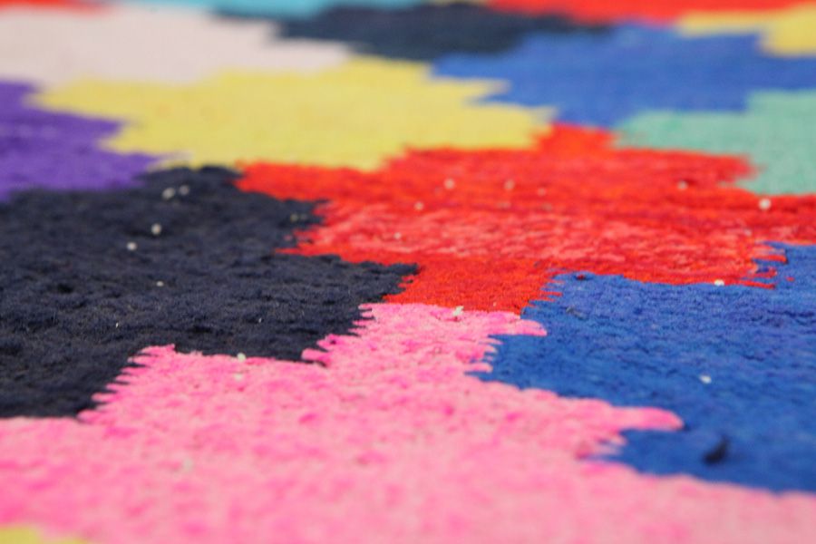 The colours of each carpet look different depending on the side from which you look at it. You can see the carpet from different perspectives in the images below: