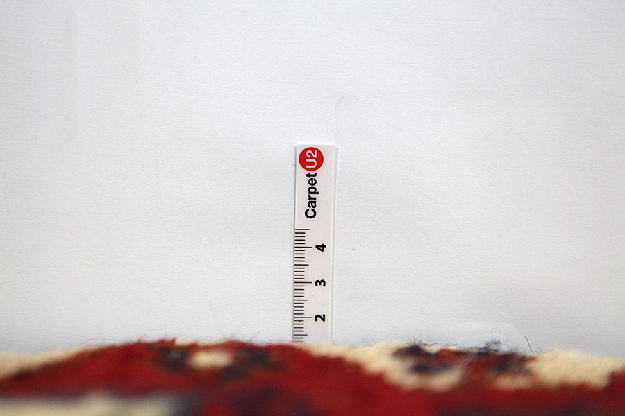 Abrash: Due to the different amount of grease in the wool and the added salt during the process of dyeing, the wool has got a varying colour absorbance. This is not very visible before weaving. During the weaving though, lines of the same colour are formed in the rug. This is called Abrash (which in Farsi means little cloud) and it shows that the wool was not manufactured using chemical means and marks the naturalness and authenticity of the rugs. Examples