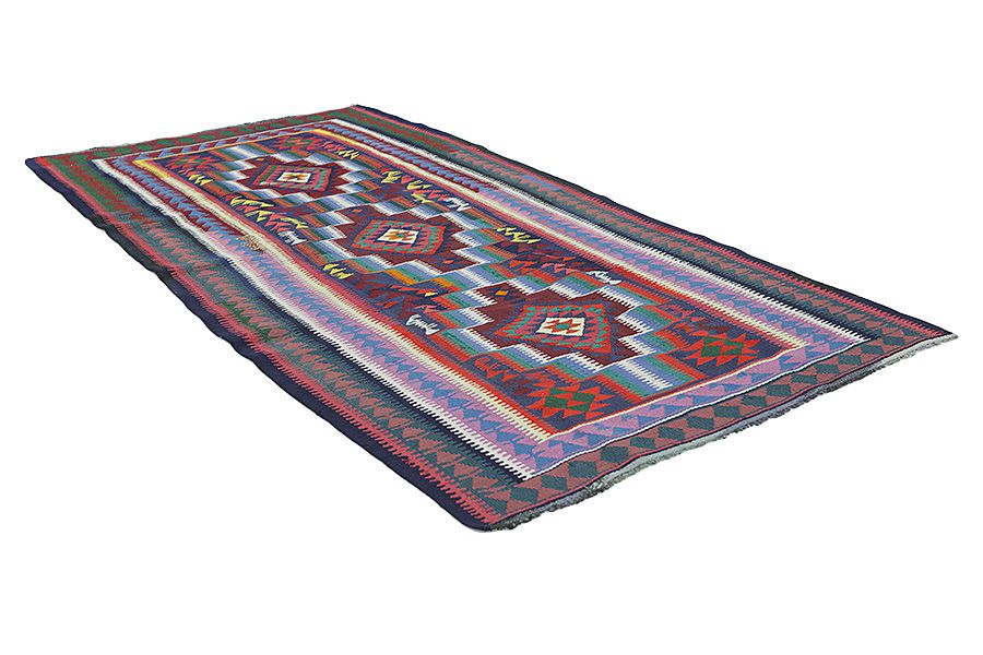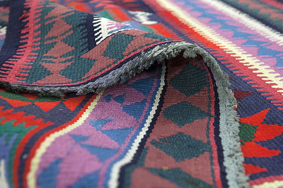 : This is a particular type of Oriental flat woven rug without a pile (which preceded the pile rug) and is manufactured mainly by nomads in Persia, Afghanistan, Turkey and in various regions of the Caucasus. These textiles are rather small with a plain weave and no pile and they have got geometric patterns and rich colours. In order to weave them, natural materials like wool are used and sometimes silk for lightweight and delicate rugs. The colouring of yarns is done with plants and minerals that contribute to natural, beautiful colours. The long history of Kilim rugs goes back centuries to the nomads of Central Asia. Initially the rugs were mainly used in households and much later became commercial products, following the bloom of the oriental ruging during the 16th and 17th century. They have many applications and can be used on the floor, as toppings or for decorating walls. The name kilim is derived from the Persian word gelim. In Kurdish they are called Berr. The most famous Persian rugs are Sumakh, Senneh, Fars and Qashqai. Many Kilims are also woven at the border between Persia and Afghanistan by the nomads of Balouch with dark earthy indicative colours.