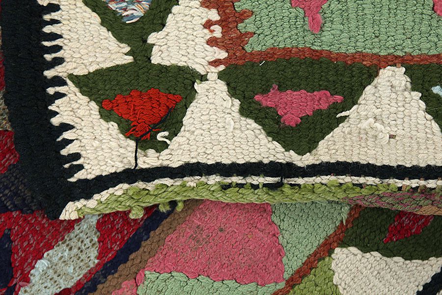 Flat woven at one or both ends of the rug's width: In some rugs the nomads weave at fringes on a narrow Kilim one or both sides of the width, or they weave them artistically into small braids. It is a technique various weavers use for a greater durability or simply to demonstrate their skill. Examples