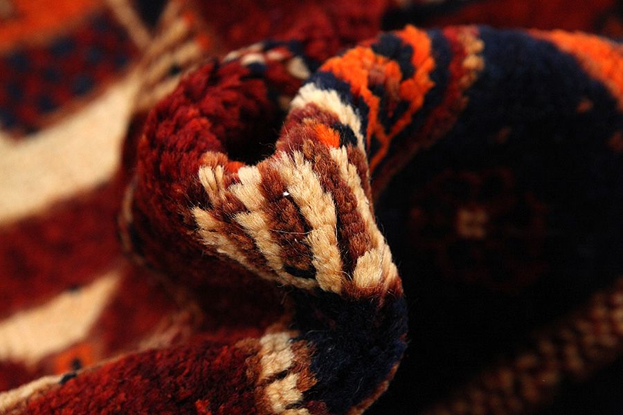 Abrash: Due to the different amount of grease in the wool and the added salt during the process of dyeing, the wool has got a varying colour absorbance. This is not very visible before weaving. During the weaving though, lines of the same colour are formed in the rug. This is called Abrash (which in Farsi means little cloud) and it shows that the wool was not manufactured using chemical means and marks the naturalness and authenticity of the rugs. Examples