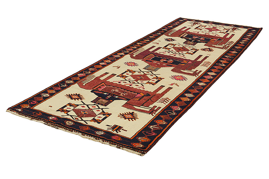 Qashqai Rugs : Qashqai rugs are woven by nomads who live in the mountainous areas of Southwest Persia, the provinces of Fars, Khuzestan, south of Isfahan and around the city Shiraz. Their rugs have a high knot density and a wide variety of designs, usually in deep red and blue colours. They weave rugs, Kilims and decorative textiles (ribbons, bags, etc.), which depict scenes from their lives with various representation of humans, animals, birds, trees and flowers.