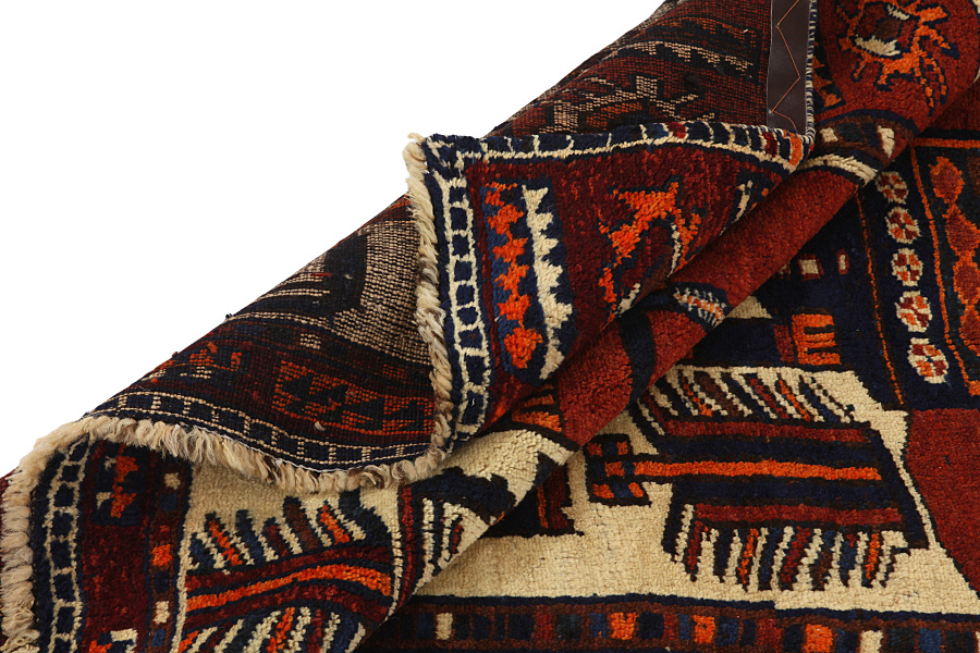 Qashqai Rugs : Qashqai rugs are woven by nomads who live in the mountainous areas of Southwest Persia, the provinces of Fars, Khuzestan, south of Isfahan and around the city Shiraz. Their rugs have a high knot density and a wide variety of designs, usually in deep red and blue colours. They weave rugs, Kilims and decorative textiles (ribbons, bags, etc.), which depict scenes from their lives with various representation of humans, animals, birds, trees and flowers.