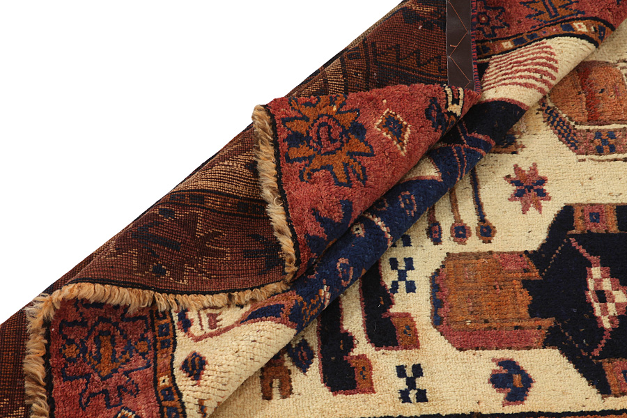 Qashqai Rugs : Qashqai rugs are woven by nomads who live in the mountainous areas of Southwest Persia, the provinces of Fars, Khuzestan, south of Isfahan and around the city Shiraz. Their rugs have a high knot density and a wide variety of designs, usually in deep red and blue colours. They weave rugs, Kilims and decorative textiles (ribbons, bags, etc.), which depict scenes from their lives with various representation of humans, animals, birds, trees and flowers.