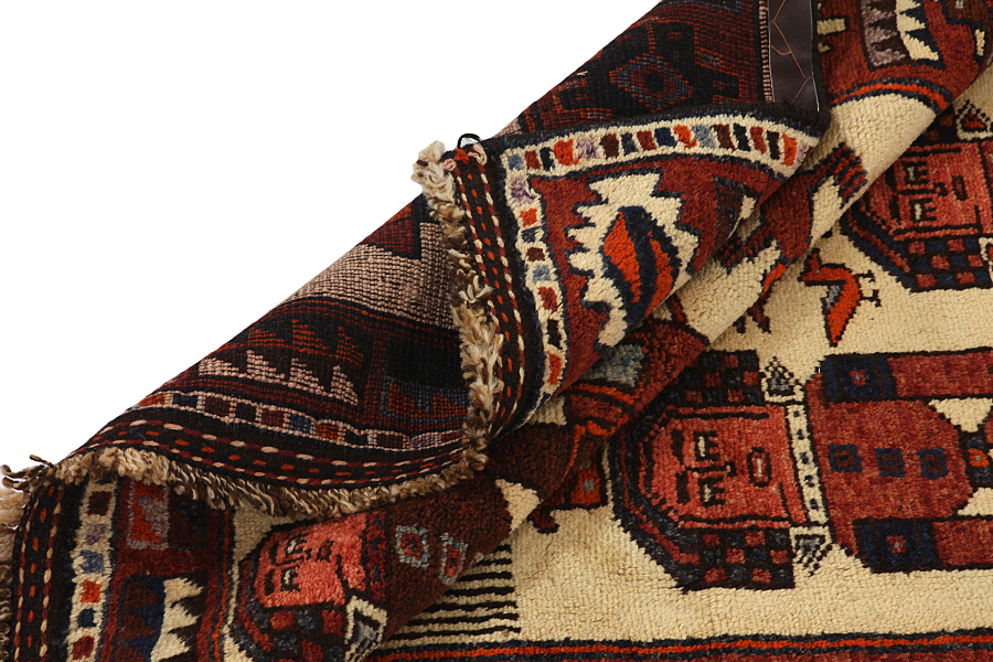Qashqai Rugs : Qashqai rugs are woven by nomads who live in the mountainous areas of Southwest Persia, the provinces of Fars, Khuzestan, south of Isfahan and around the city Shiraz. Their rugs have a high knot density and a wide variety of designs, usually in deep red and blue colours. They weave rugs, Kilims and decorative textiles (ribbons, bags, etc.), which depict scenes from their lives with various representation of humans, animals, birds, trees and flowers.