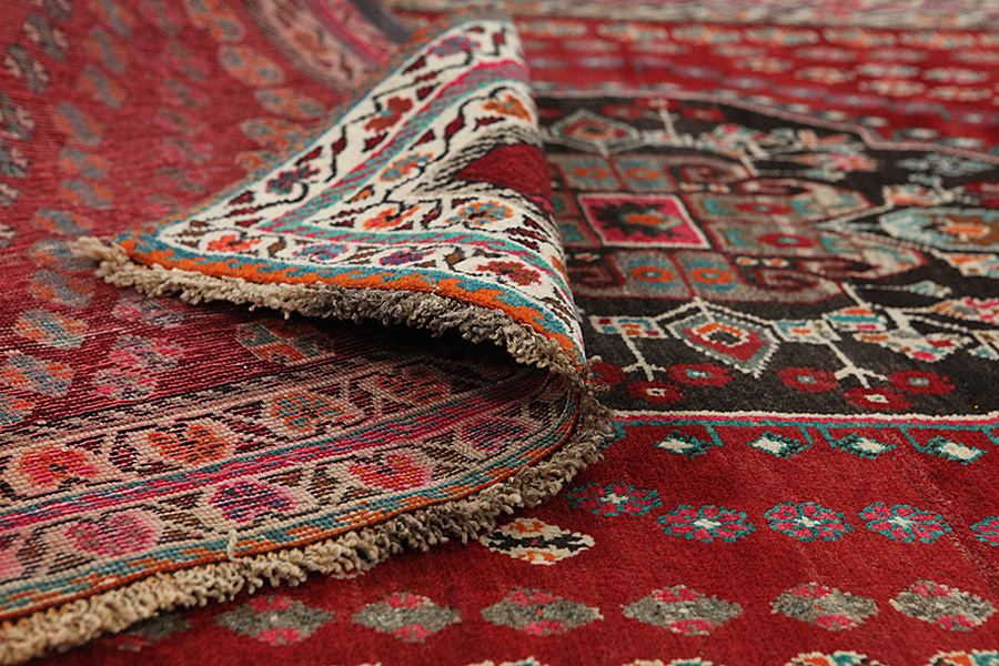 Qashqai Rugs : Qashqai rugs are woven by nomads who live in the mountainous areas of Southwest Persia, the provinces of Fars, Khuzestan, south of Isfahan and around the city Shiraz. Their rugs have a high knot density and a wide variety of designs, usually in deep red and blue colours. They weave rugs, Kilims and decorative textiles (ribbons, bags, etc.), which depict scenes from their lives with various representation of humans, animals, birds, trees and flowers.
