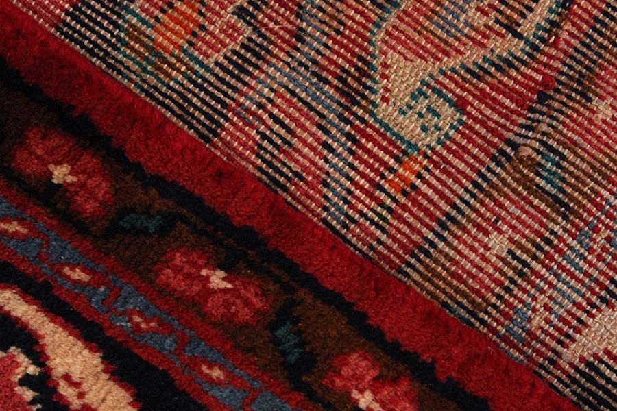 Abrash: Due to the different amount of grease in the wool and the added salt during the process of dyeing, the wool has got a varying colour absorbance. This is not very visible before weaving. During the weaving though, lines of the same colour are formed in the rug. This is called Abrash (which in Farsi means little cloud) and it shows that the wool was not manufactured using chemical means and marks the naturalness and authenticity of the rugs. Examples