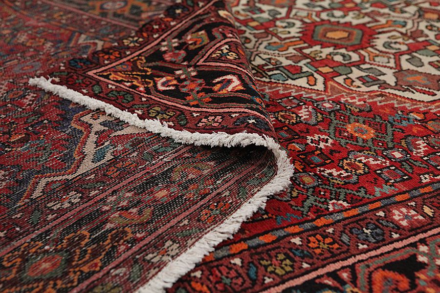 Abrash: Due to the different amount of grease in the wool and the added salt during the process of dyeing, the wool has got a varying colour absorbance. This is not very visible before weaving. During the weaving though, lines of the same colour are formed in the rug. This is called Abrash (which in Farsi means little cloud) and it shows that the wool was not manufactured using chemical means and marks the naturalness and authenticity of the rugs. Examples