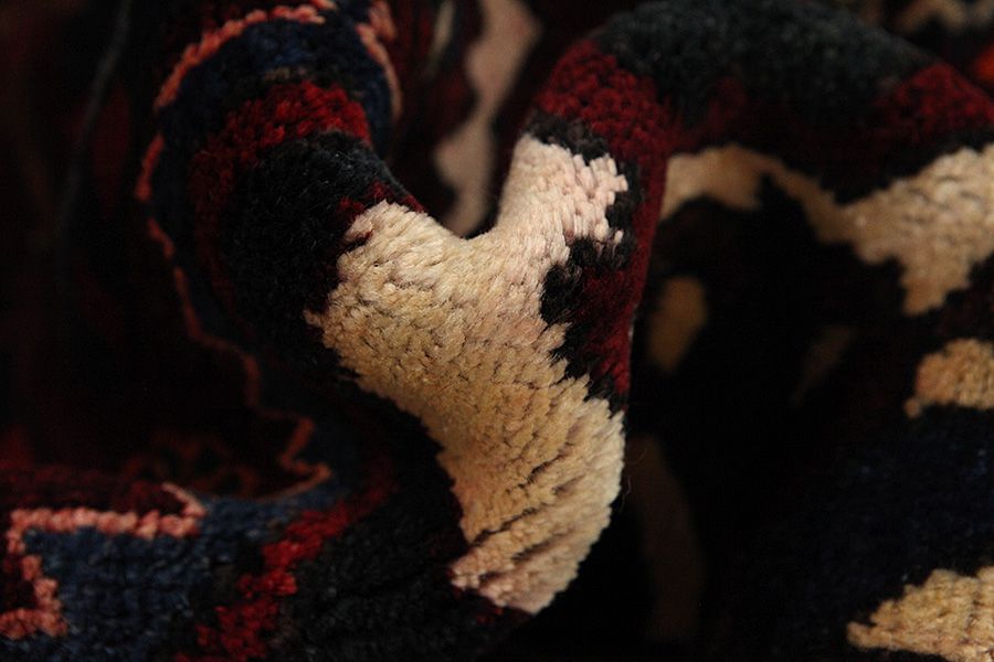 Abrash: Due to the different amount of grease in the wool and the added salt during the process of dyeing, the wool has got a varying colour absorbance. This is not very visible before weaving. During the weaving though, lines of the same colour are formed in the rug. This is called Abrash (which in Farsi means little cloud) and it shows that the wool was not manufactured using chemical means and marks the naturalness and authenticity of the rugs. Examples