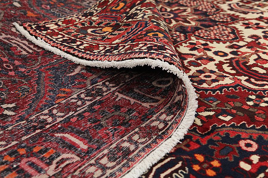 Bakhtiari Rugs : In the mountains Zagros, west of the city of Isfahan, around the town of Shahr-e-Kurd, live the nomads Bakhtiar. Their rugs are known for the design with various repeating squares in which flowers and animals are depicted. For this reason the design is called "garden"(Khesti). Their rugs are very durable with a dense weave and very good quality Persian wool coming from sheep grazing at a high altitude. The best Bakhtiari rugs with highest knot density are often called Bibibaff.