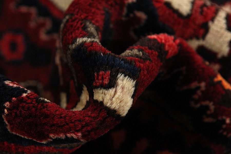 Abrash: Due to the different amount of grease in the wool and the added salt during the process of dyeing, the wool has got a varying colour absorbance. This is not very visible before weaving. During the weaving though, lines of the same colour are formed in the rug. This is called Abrash (which in Farsi means little cloud) and it shows that the wool was not manufactured using chemical means and marks the naturalness and authenticity of the rugs. Examples